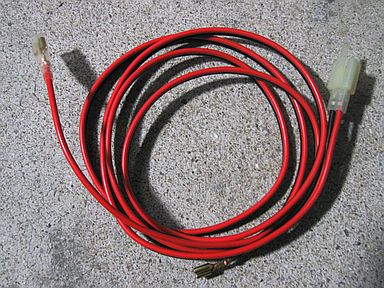 充電器に繋ぐ端子は平型のギボシ端子を圧着して、地面に垂らした際に車体に触れない程度の長さにしておきました。