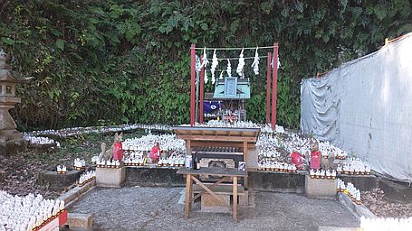 源氏山公園を少し超えたところにある葛原岡神社の魔去ル石で皿を叩き割って